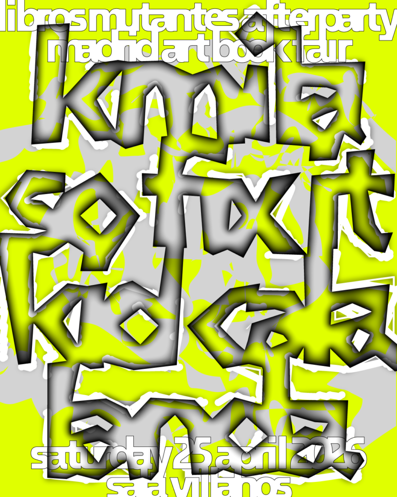 Libros Mutantes lleva su lenguaje al club el sábado por la noche, de La Casa Encendida a la Sala Villanos, una continuidad en otro contexto. KMILA, SO FIX IT, KID CALA y LANDA activan la pista con sets que combinan pulsos intensos, texturas densas y ritmos en constante transformación, generando un espacio donde la energía circula libremente. Cada set fluye entre intensidad, corte y apertura, entrelazándose y creando un recorrido sonoro que envuelve al público, invitando a moverse, dejarse llevar y sentirse parte del momento. Una misma energía que se reencuentra en otro espacio
